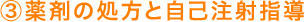 初回は院内で看護師が自己注射の方法を丁寧にレクチャーします。2回目以降はご自宅で行っていただきます。 -